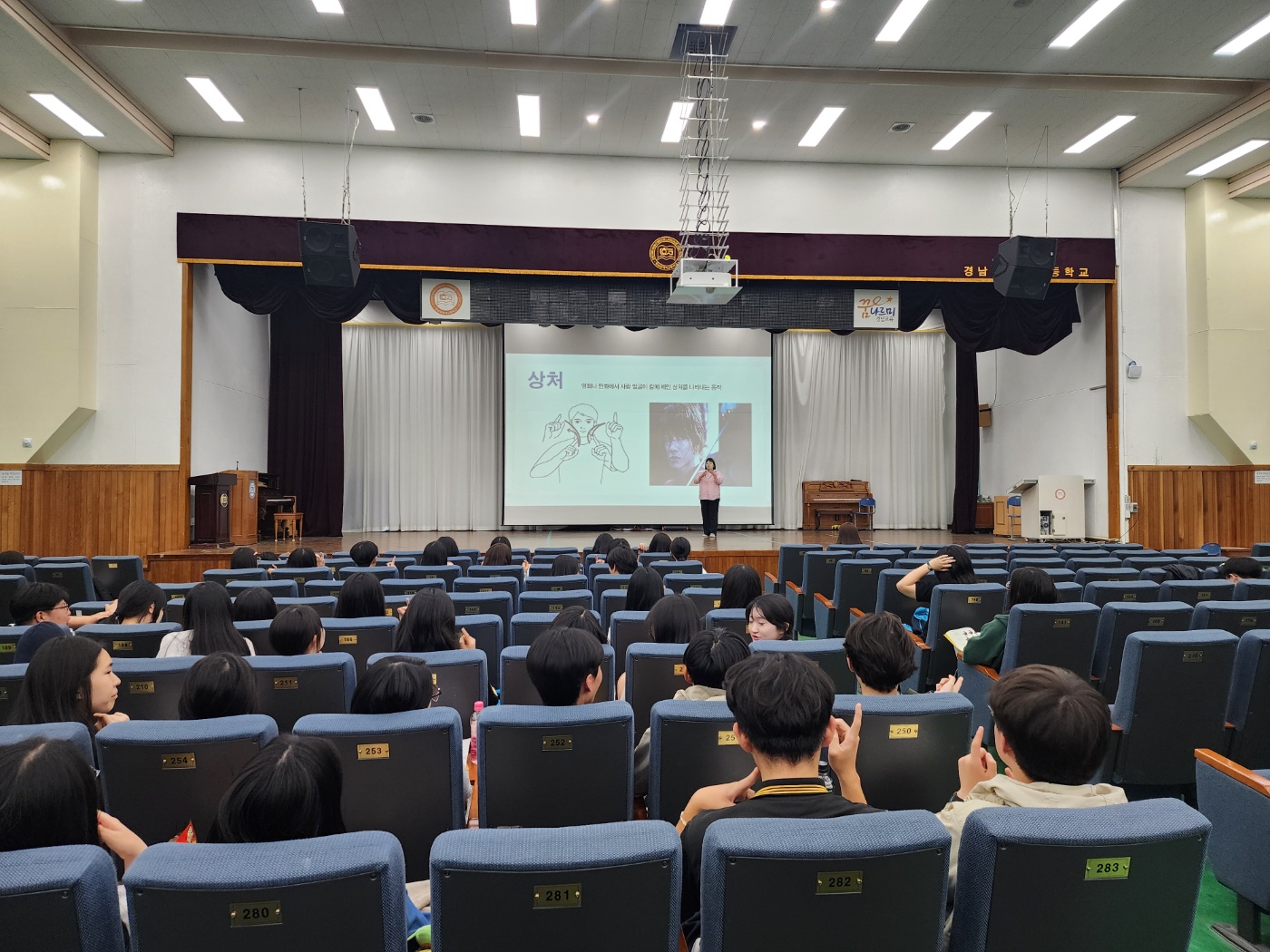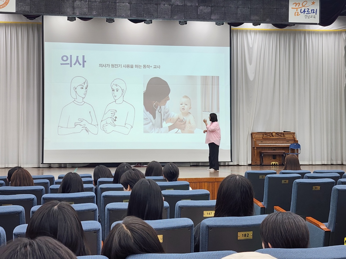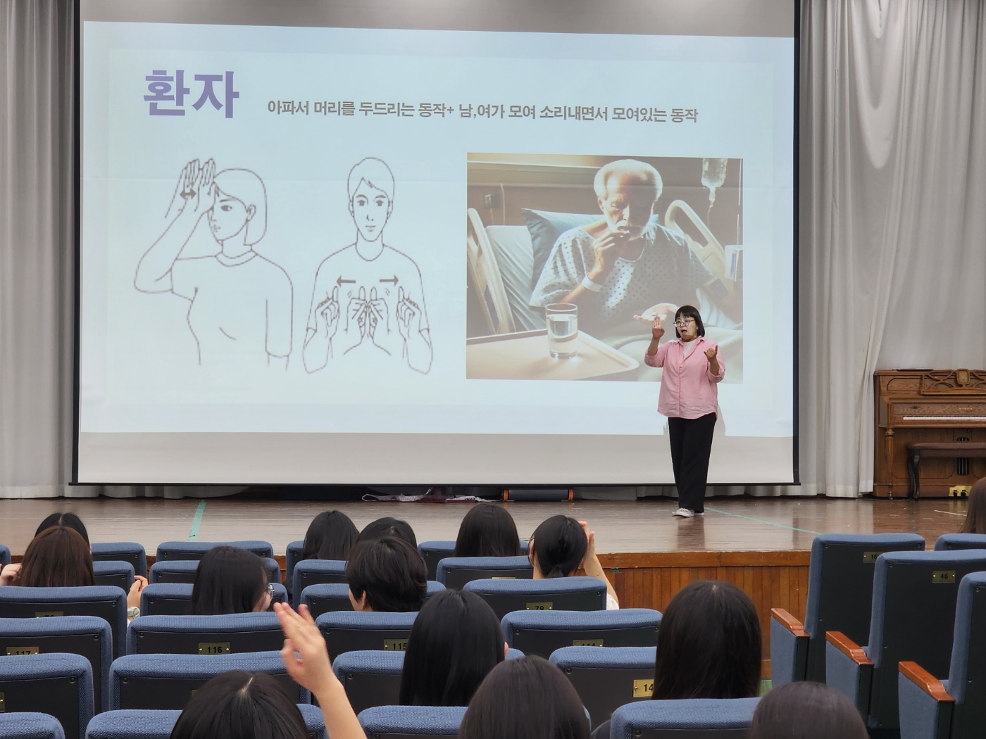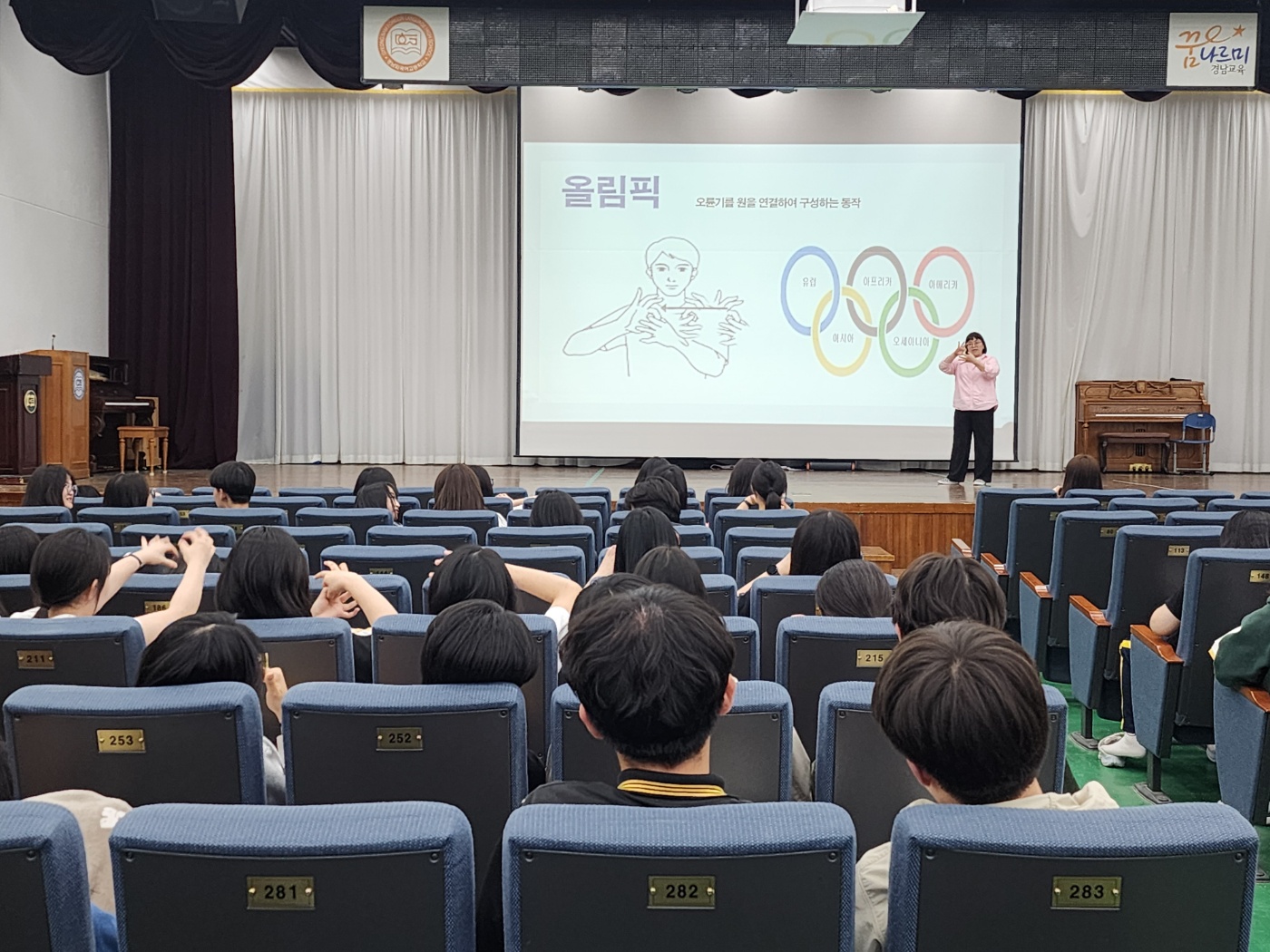 수어 교육, 중반을 지나며 학생들의 이해도와 실력 향상 본교에서 진행 중인 수어 교육 과정이 중반을 넘어서며, 학생들의 농인 문화에 대한 이해와 수어 표현 능력이 눈에 띄게 향상되고 있다. 학생들은 수업을 통해 수어의 구조와 표현 방식에 대한 이해를 높이고 있으며, 실제 소통 상황에서의 활용 능력도 꾸준히 발전하고 있다. 이번 과정을 통해 학생들은 농인에 대한 인식과 배려의 태도를 함께 함양하고 있으며, 앞으로 남은 교육을 통해 더욱 성숙한 언어 감수성과 소통 역량을 갖출 것으로 기대된다.